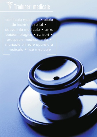 Traduceri medicale certificate medicale • bilete de iesire din spital • adeverinte medicale • avize epidemiologice • scrisori • prospecte medicamente • manuale utilizare aparatura medicala • fise medicale