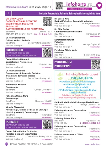 P Pediatrie, Pneumologie, Psihiatrie, Psihologie ºi Psihoterapie Baia Mare